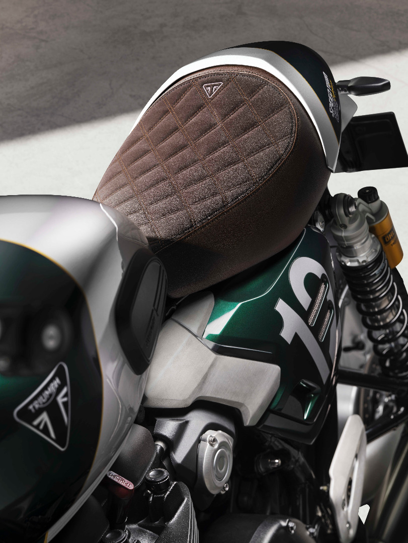 Il est équipé de guidon bracelets, ne dispose pas de repose-pieds passager et est doté d'une Selle haut de gamme marron distinctive avec dosseret de selle amovible, ainsi que d'un ensemble soigneusement sélectionné d'améliorations esthétiques. Chaque Speed Twin 1200 Cafe Racer Edition est également livrée avec son propre certificat d'authenticité, garantissant l'exclusivité de cette moto en édition limitée.